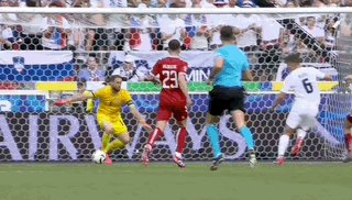 第28分钟,埃里克森右路低平球传中,斯洛文尼亚禁区内两名球员差点自摆乌龙。