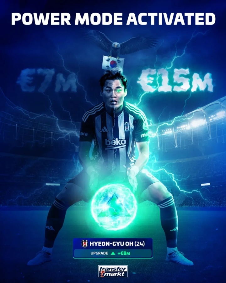 吴贤揆今年冬窗以1400万欧转会费从比甲球队亨克加盟贝西克塔斯,顶替离队的亚伯拉罕,目前6场比赛贡献4球2助,其中包括精彩的倒钩和时速高达122km/h的小角度爆射世界波。