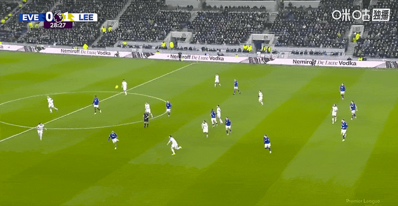 第28分钟,詹姆斯-贾斯廷禁区推射破门,利兹联1-0埃弗顿